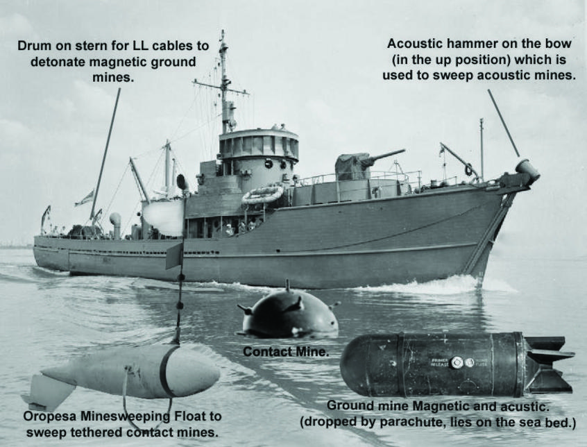 BYMS’s were built in the United States and transferred the Royal Navy under the Lend-lease Programme. “British Yard Mine Sweepers” are so called because they were built to the same design as the US Navy’s “Yard Mine Sweepers”.