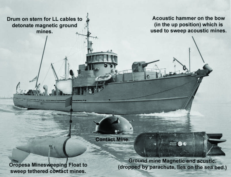 BYMS’s were built in the United States and transferred the Royal Navy under the Lend-lease Programme. “British Yard Mine Sweepers” are so called because they were built to the same design as the US Navy’s “Yard Mine Sweepers”.