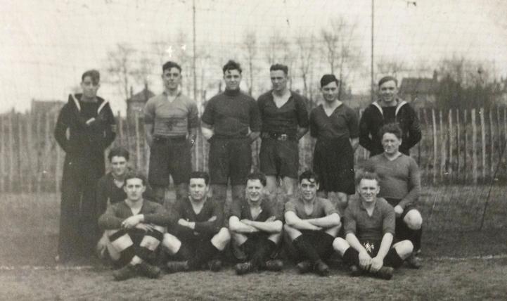 HMS Mendip's Football Team 1942. Ernie third from right back row.